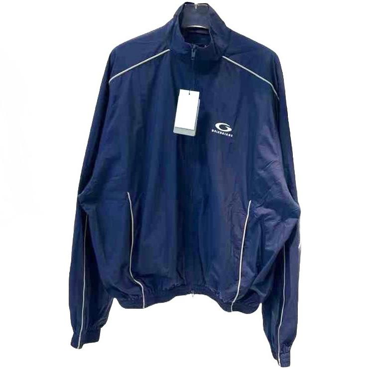 Balenciaga MEN'S LOOP SPORTS ICON LARGE TRACKSUIT JACKET IN NAVY BLUE.