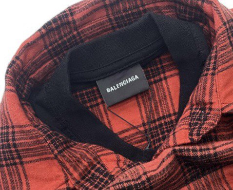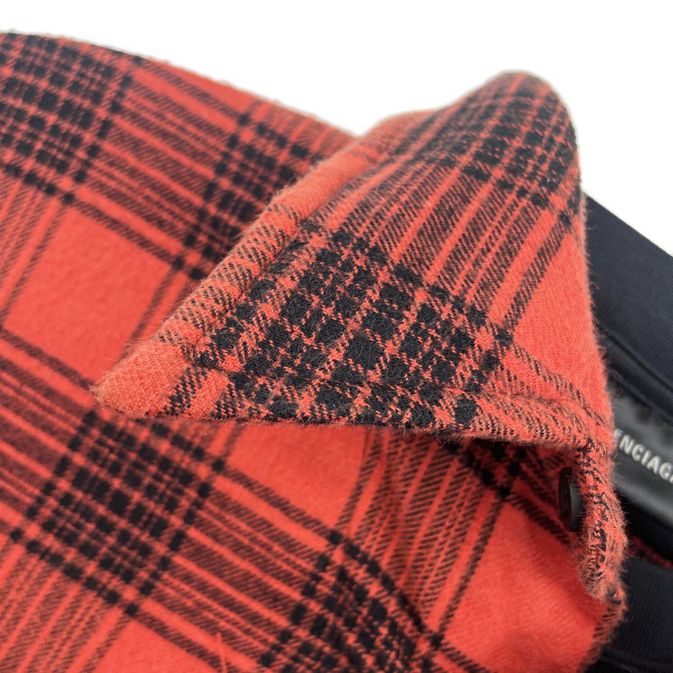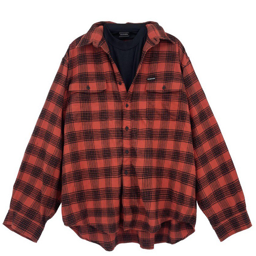 Red and black checked oversized shirt from Balenciaga has an open placket and comes with a casual inlaid jersey black T-shirt for versatile wear.