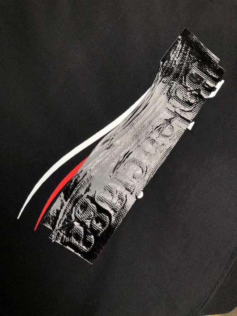 Black T-shirt from Balenciaga brand. The signature motif is embroidered at the chest and back of this oversized cotton T-shirt, with each logo covered in embossed black tape.