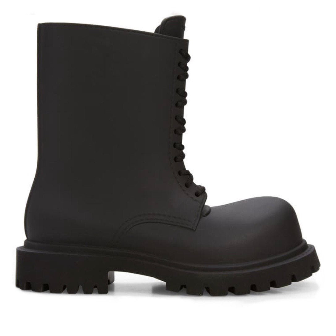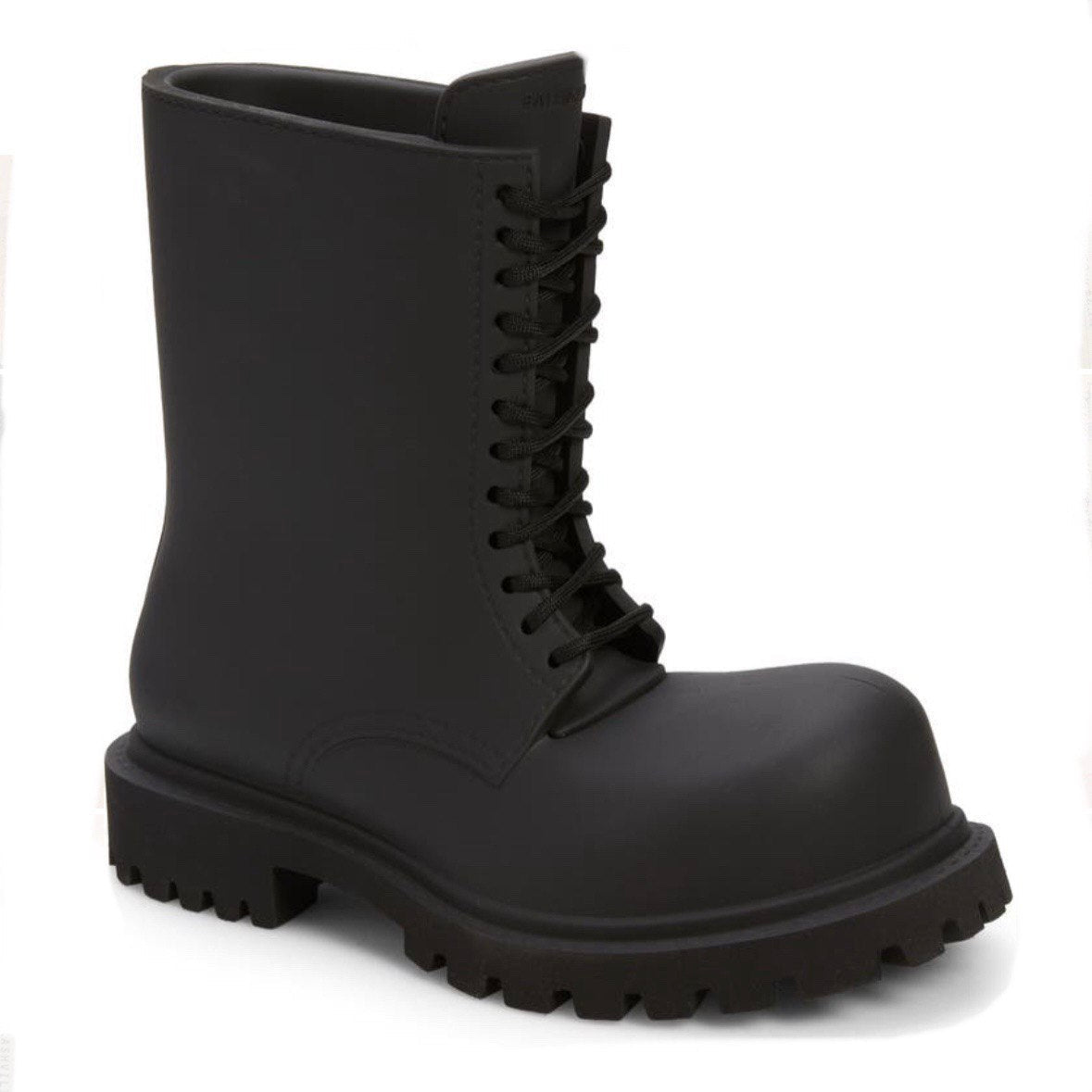 Balenciaga's black EVA striped boot features a maxi round toe, logoed tongue and rubber lug sole.