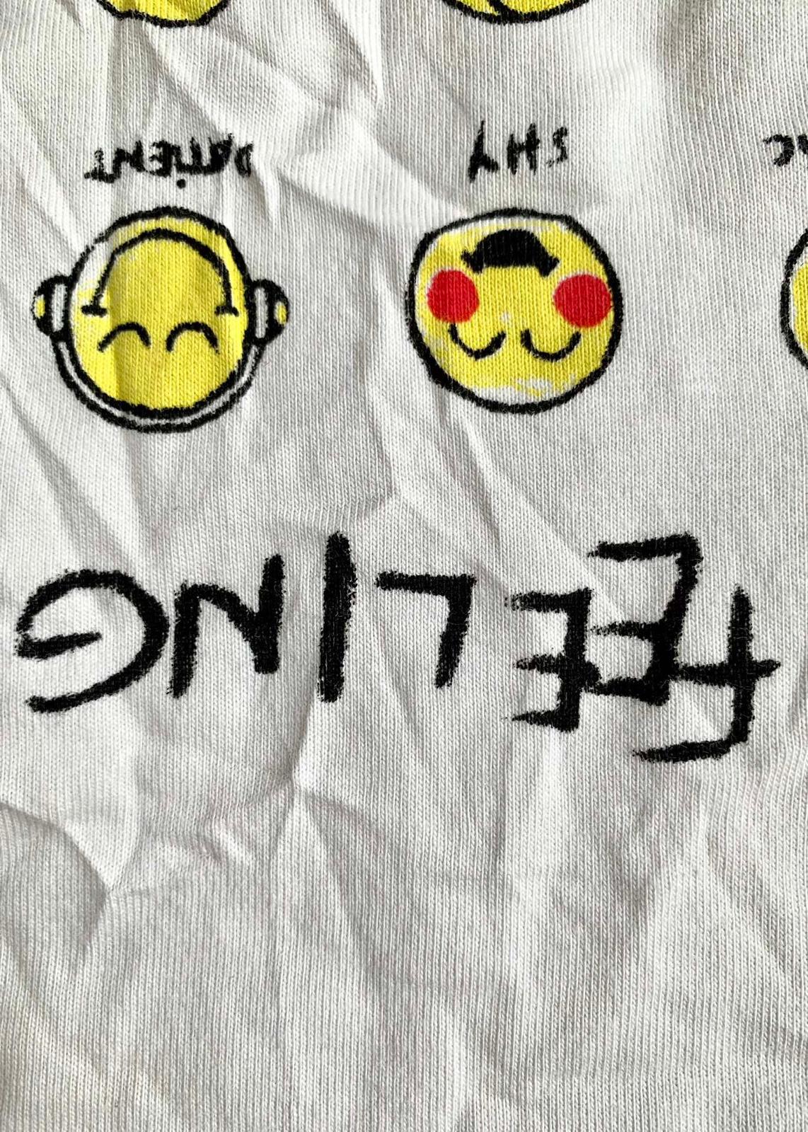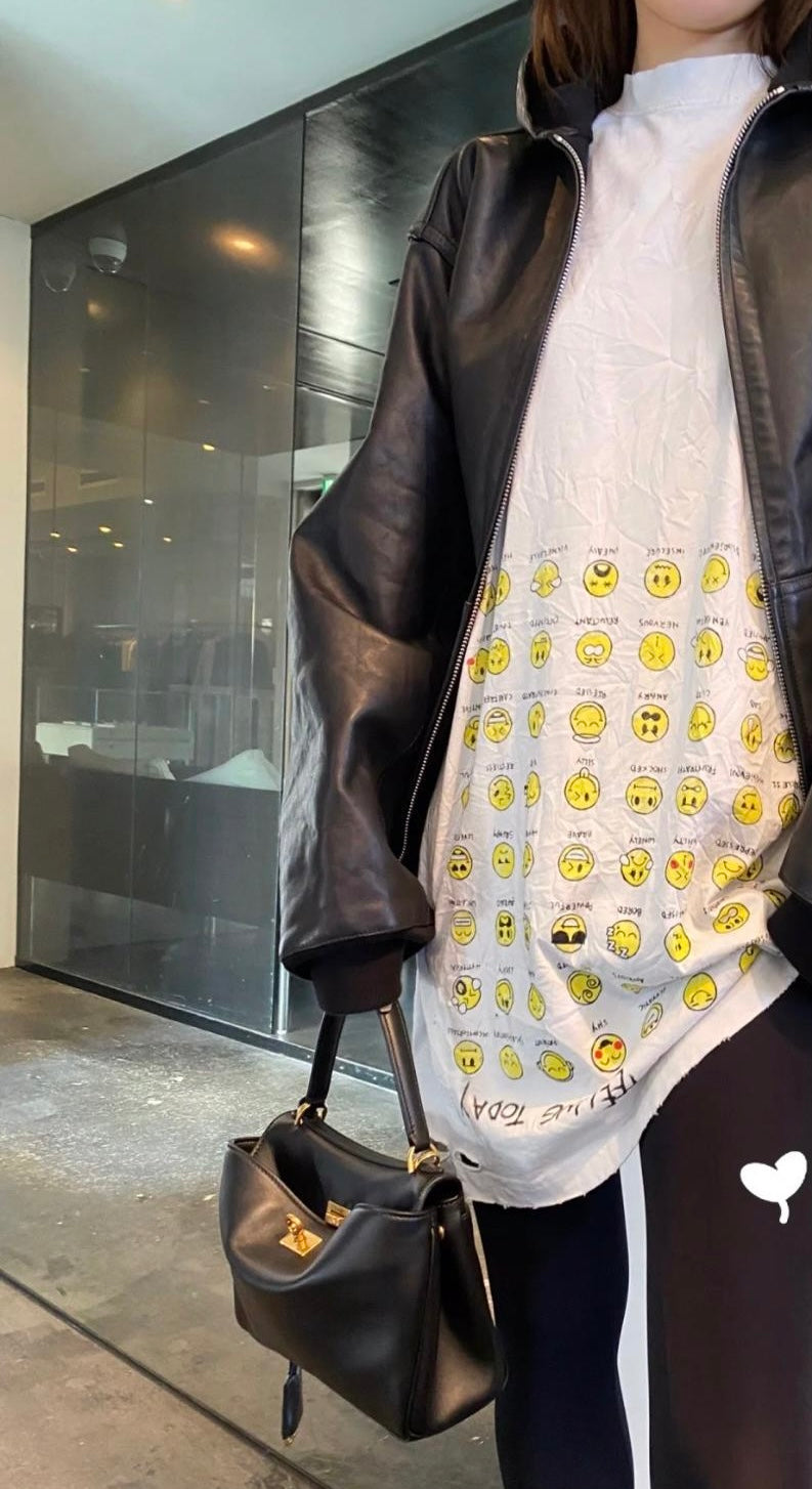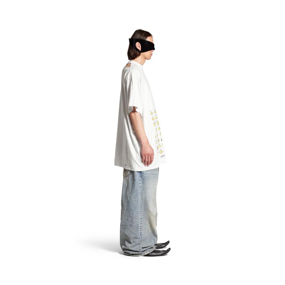 The Balenciaga Vintage Effect T-shirt is a bold statement piece. Crafted from premium cotton, this oversized tee offers unparalleled comfort and a relaxed fit. Its unique design features a playful print of yellow emoticons with captions like "SLEEPY" and "HAPPY," alongside the question "HOW ARE YOU FEELING TODAY?"