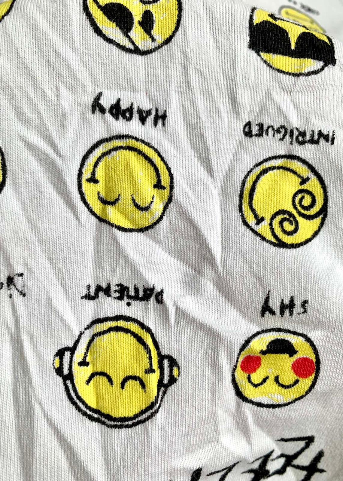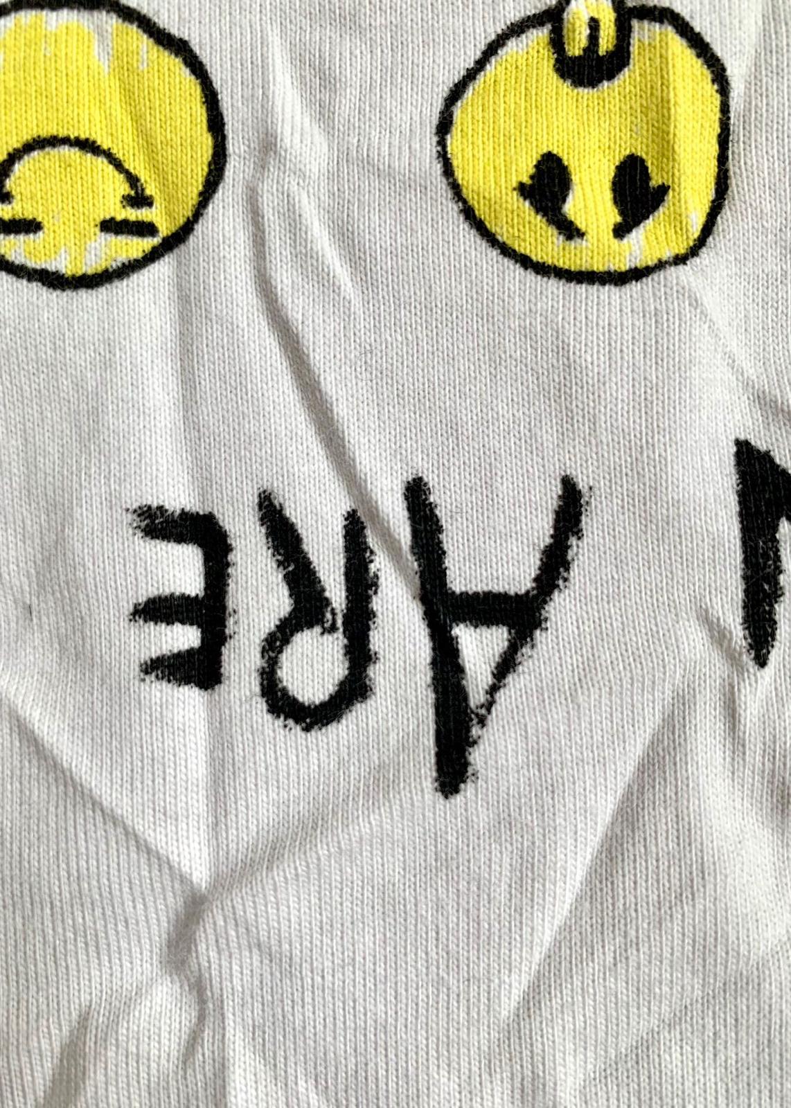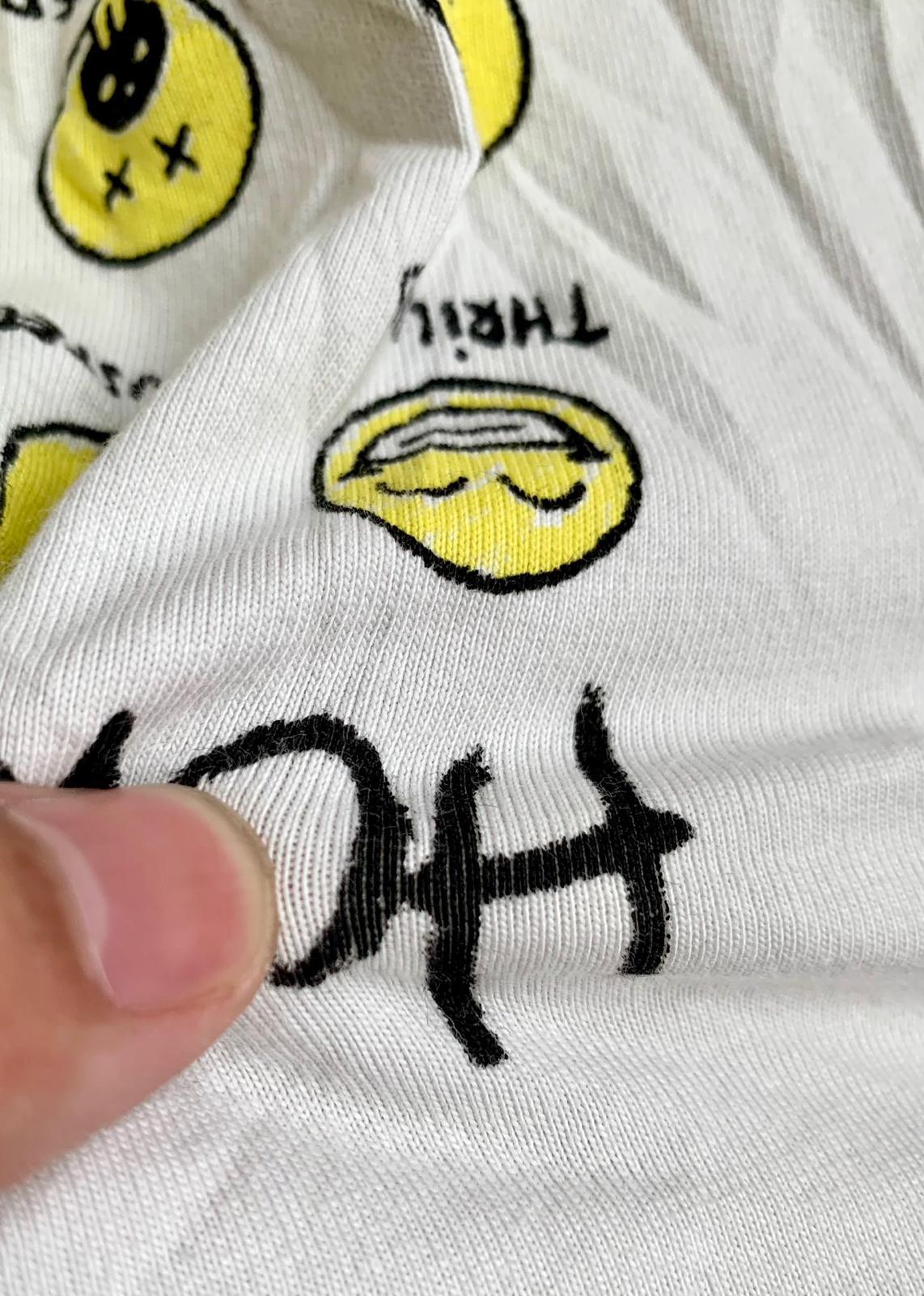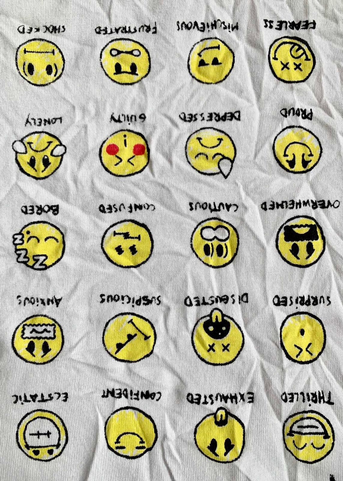The Balenciaga Vintage Effect T-shirt is a bold statement piece. Crafted from premium cotton, this oversized tee offers unparalleled comfort and a relaxed fit. Its unique design features a playful print of yellow emoticons with captions like "SLEEPY" and "HAPPY," alongside the question "HOW ARE YOU FEELING TODAY?"