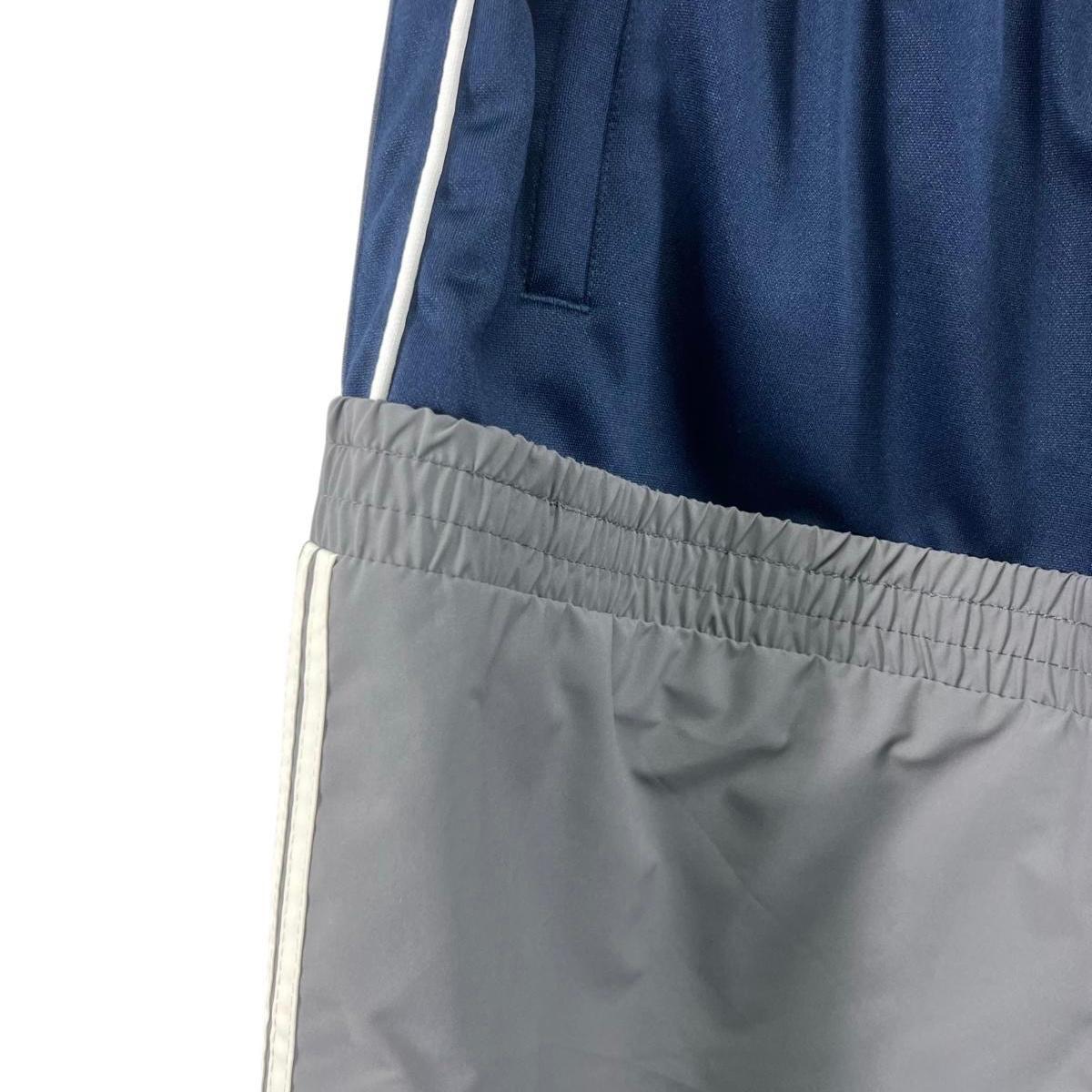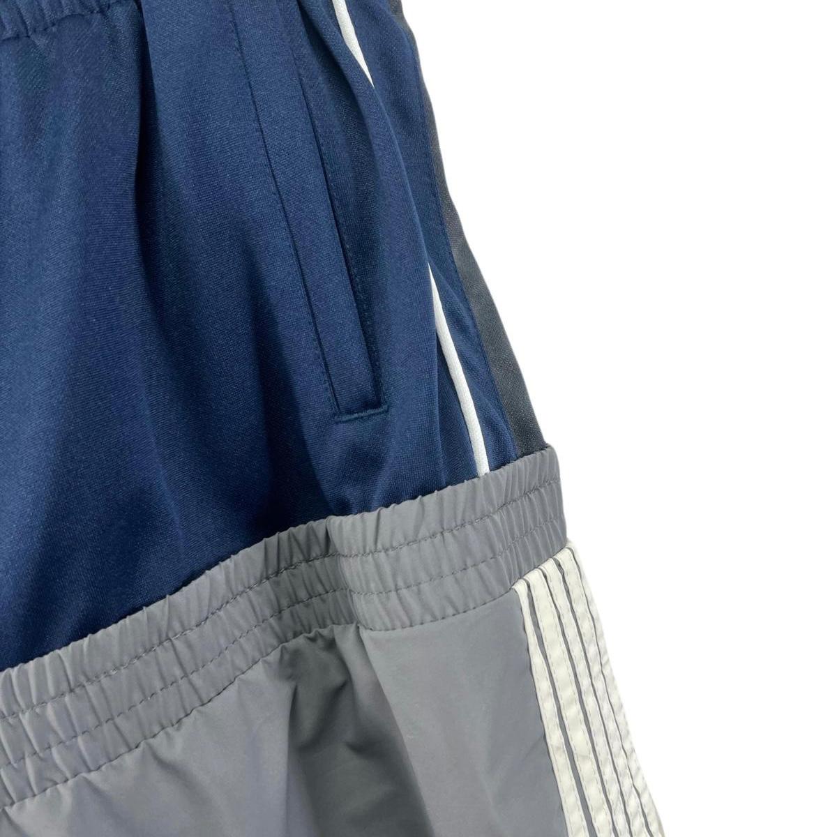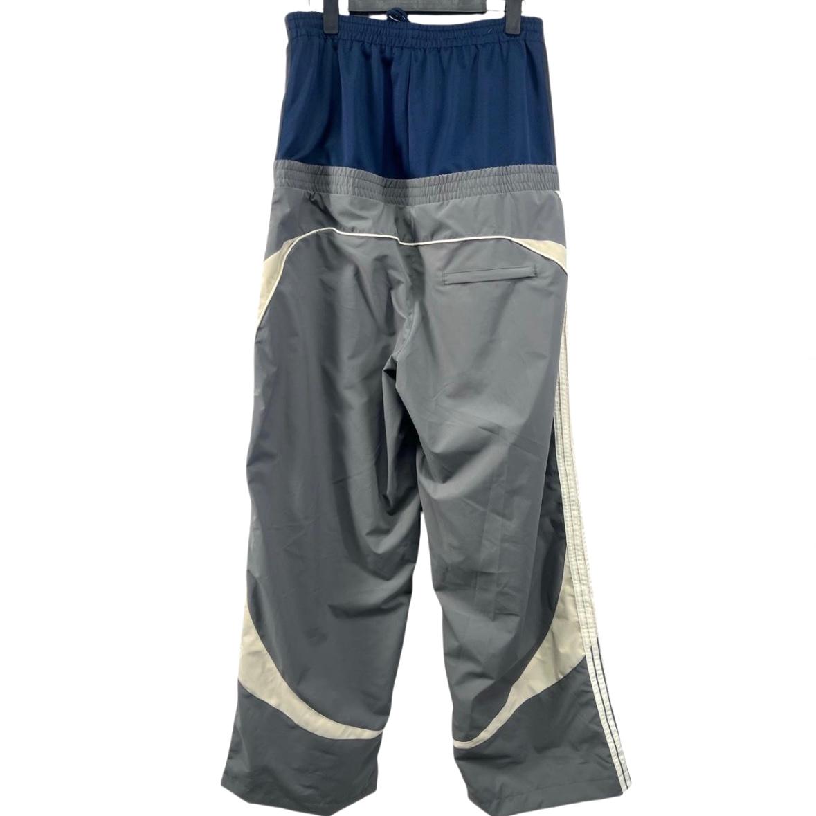 Balenciaga Tracksuit Cut-Up Trousers. Grey technical stretch fabric. Trompe l'oeil effect double waistband. Two zipped side pockets, one zipped back pocket. Embroidered sports icon loop motif. Contrasting details.