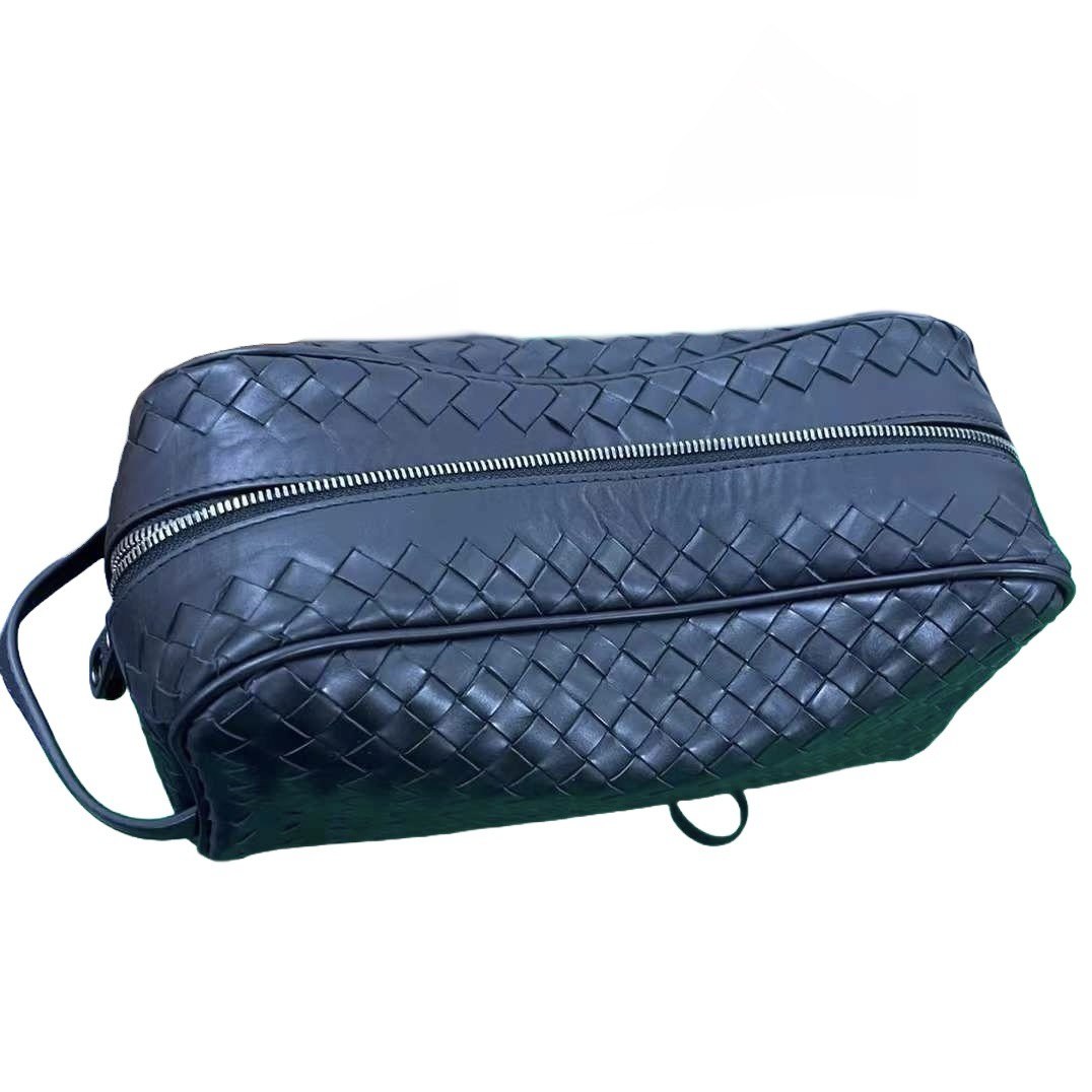 Expertly crafted by Bottega Veneta, this Leather Intrecciato Wash Bag is the perfect travel companion for the modern gentleman. Its compact and functional design allows for easy storage and transportation of skincare products, while the iconic Intrecciato weave adds a touch of sophistication to your on-the-go routine.