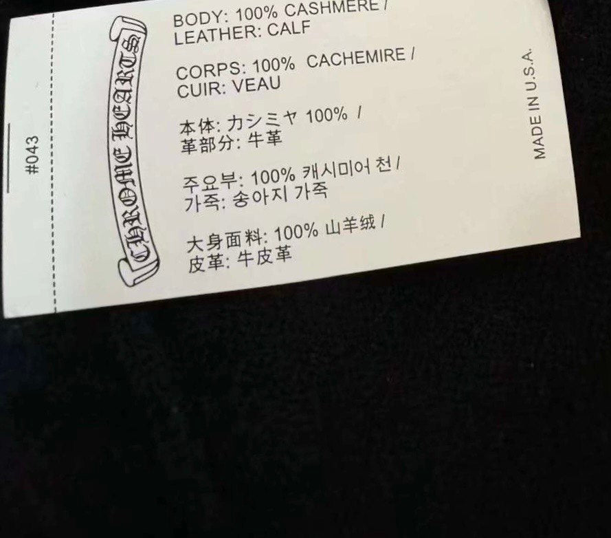 Cashmere Beanie from Chrome Hearts brand, in black color with blue leather cross patches on the top