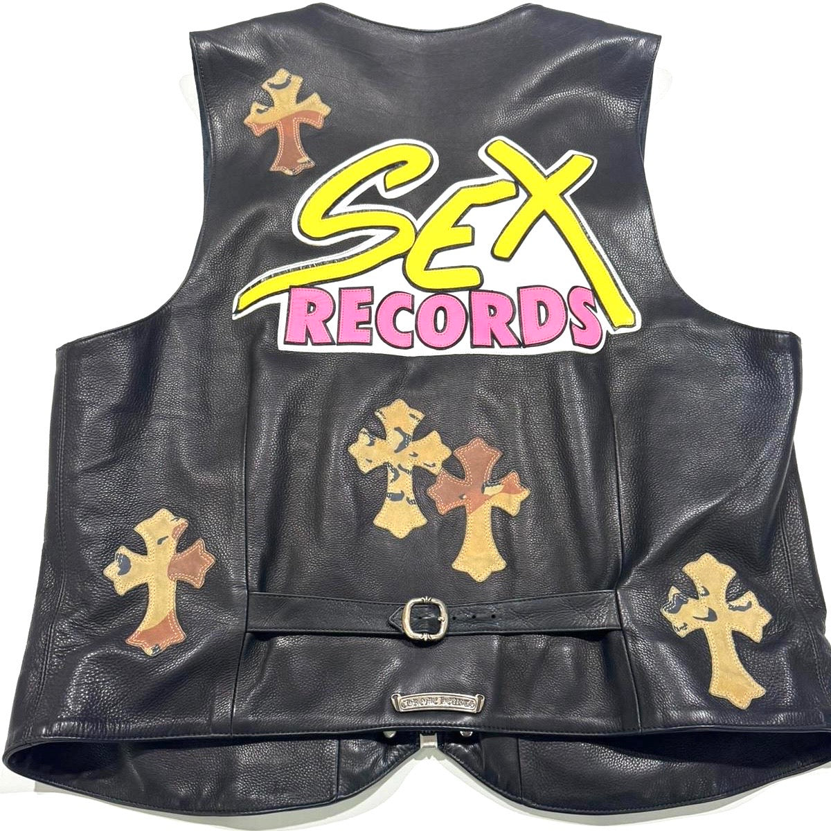 So Special, highly rare and exclusive Chrome Hearts Matty Boy Sex Records Black Leather Zip-Up Vest. In excellent condition. Size US M / EU 48-50