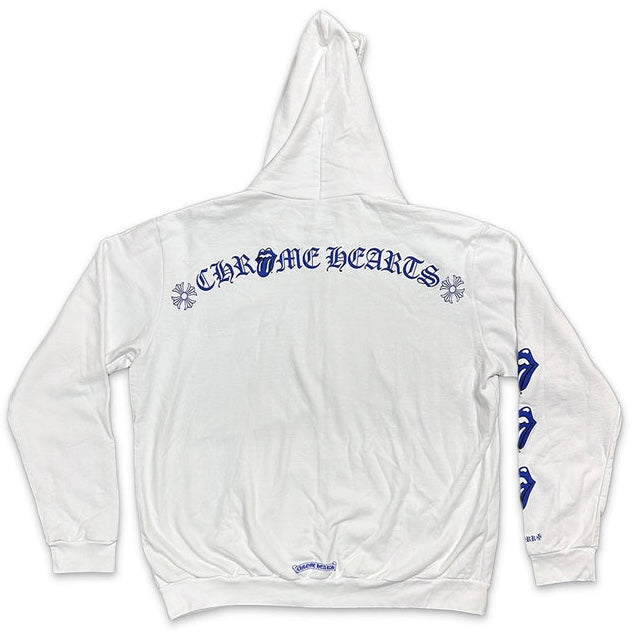 White Chrome Hearts Rolling Stones Script Blue Logo Zip Up Hoodie. Special Edition. Last 2 pieces available in sizes S and M