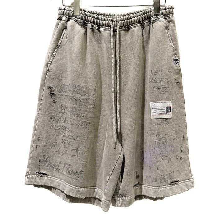 Expertly crafted with a bleached finish and a hand-drawn print, the MAISON MIHARA YASUHIRO Bleached Shorts in 'Beige' offer a unique and stylish addition to any wardrobe. The elastic waistband and spindles provide a comfortable fit for all-day wear.