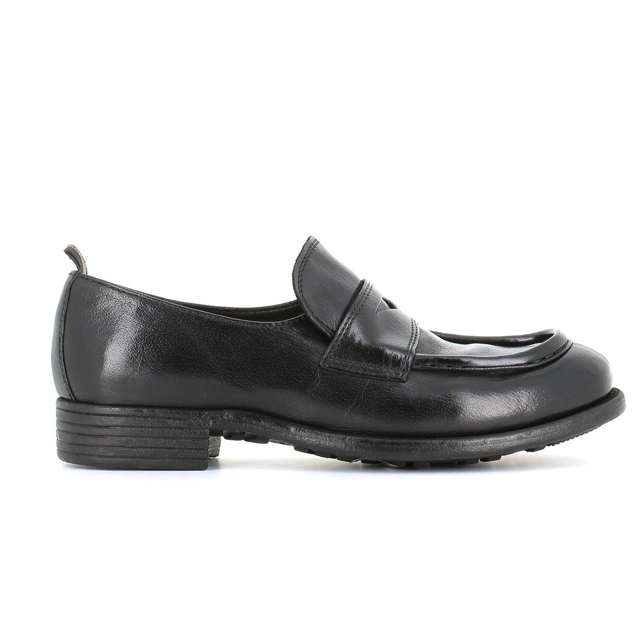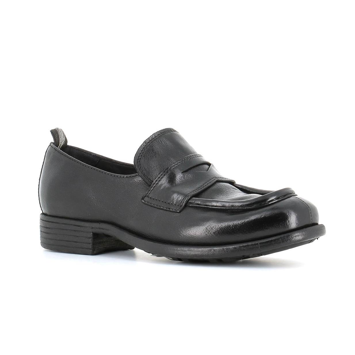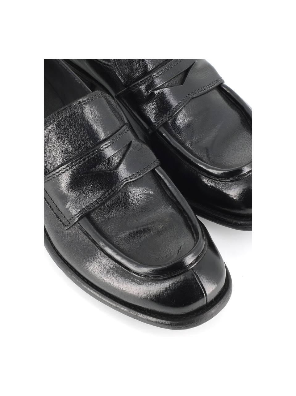 Black buffalo leather and calf leather Arc loafers from Officine Creative featuring a round toe, a branded insole, a pull tab at the rear and a chunky low heel.
