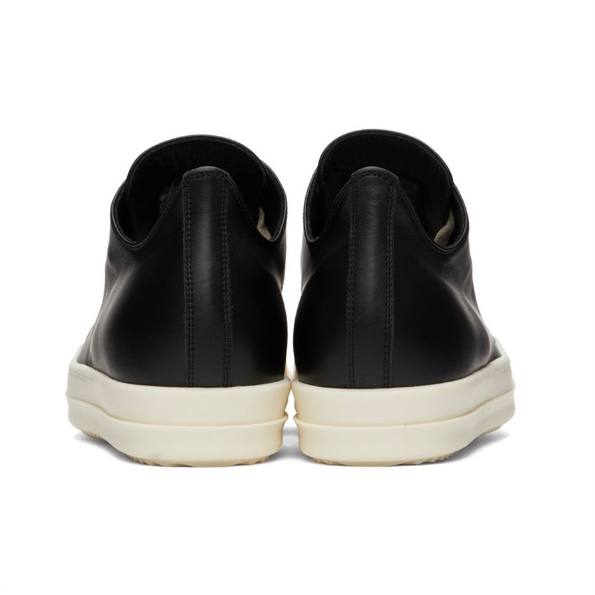 Low-top grained calfskin Rick Owens sneakers in black. Platform high is 1,5 in