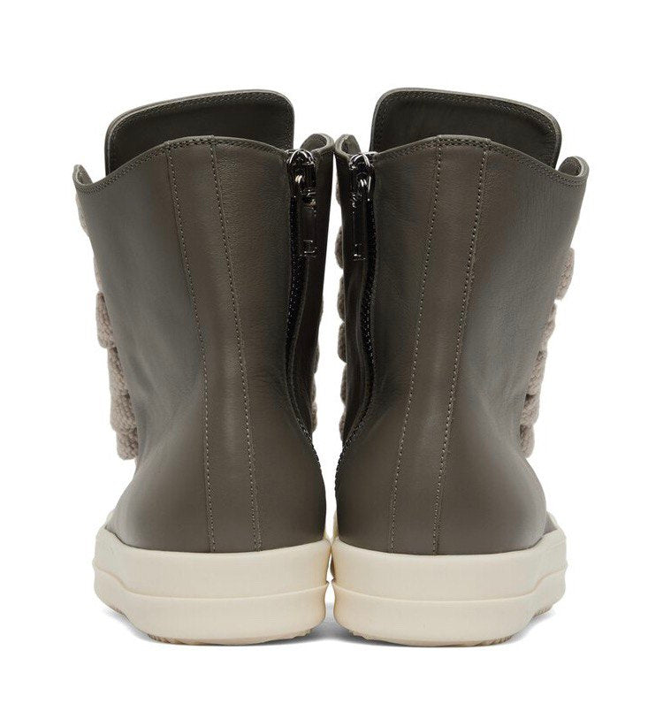 Khaki high-top lace-up sneakers from RICK OWENS DRKSHDW featuring paneled design, ankle-length, branded insole, front lace-up fastening and flat rubber sole.t.