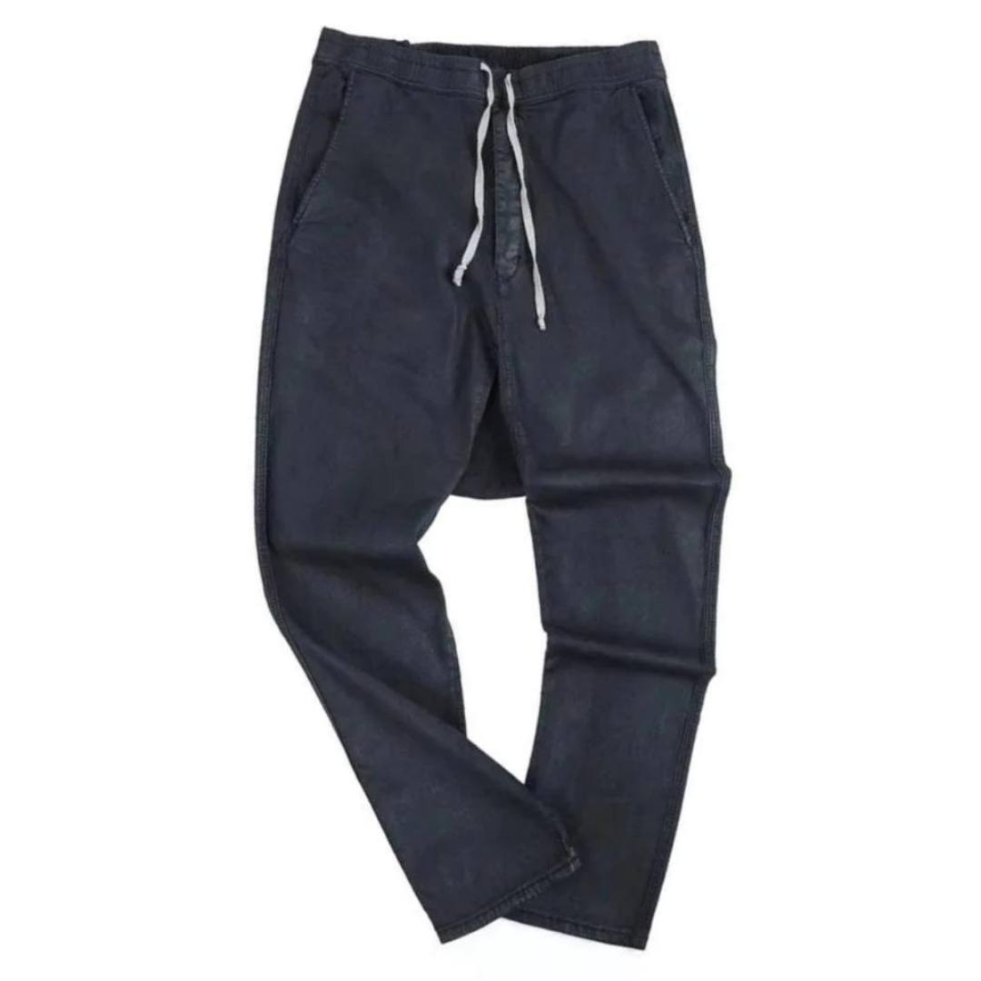 Stylish, fashionable and good looking pants by RICK OWENS. The pants are available in the classic, good looking pure black color. A combination makes them of cotton and spandex. RICK OWENS has used 97 % of cotton and 3 % of spandex for making the pants. The pants have a traditional pocket on each side. The RICK OWENS pants are easy to wear and have an elasticated waist. These pants are available in three different sizes of small, medium, and large. Due to the elasticated waist, the multiple lengths of the trousers are adjustable and can be used by a person having a relatively extra waist. The pants do have white laces to tie them up if required.