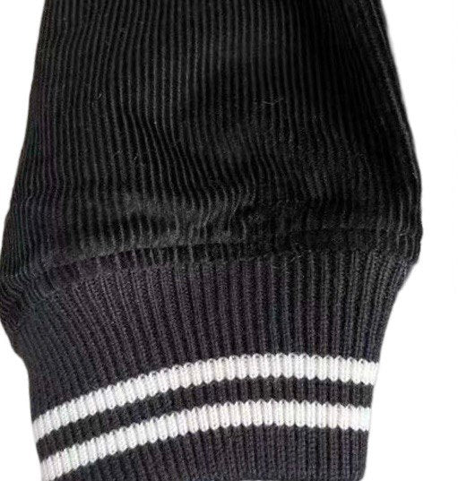 Saint Michael Bomber Jacket with ribbed material in black color.