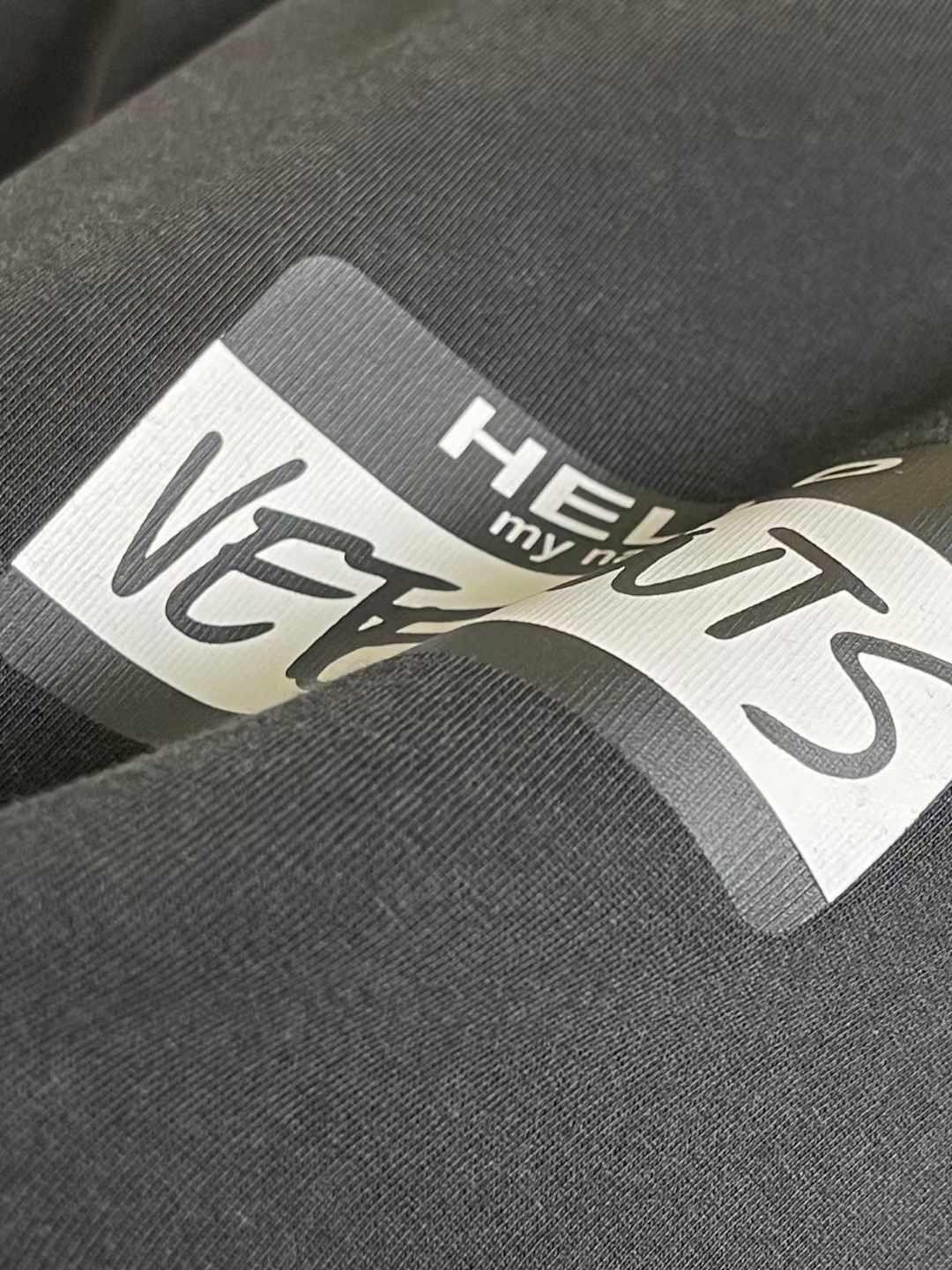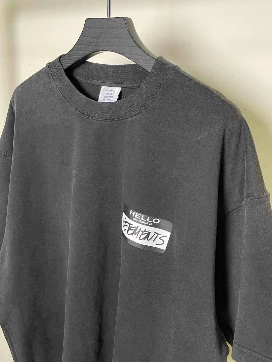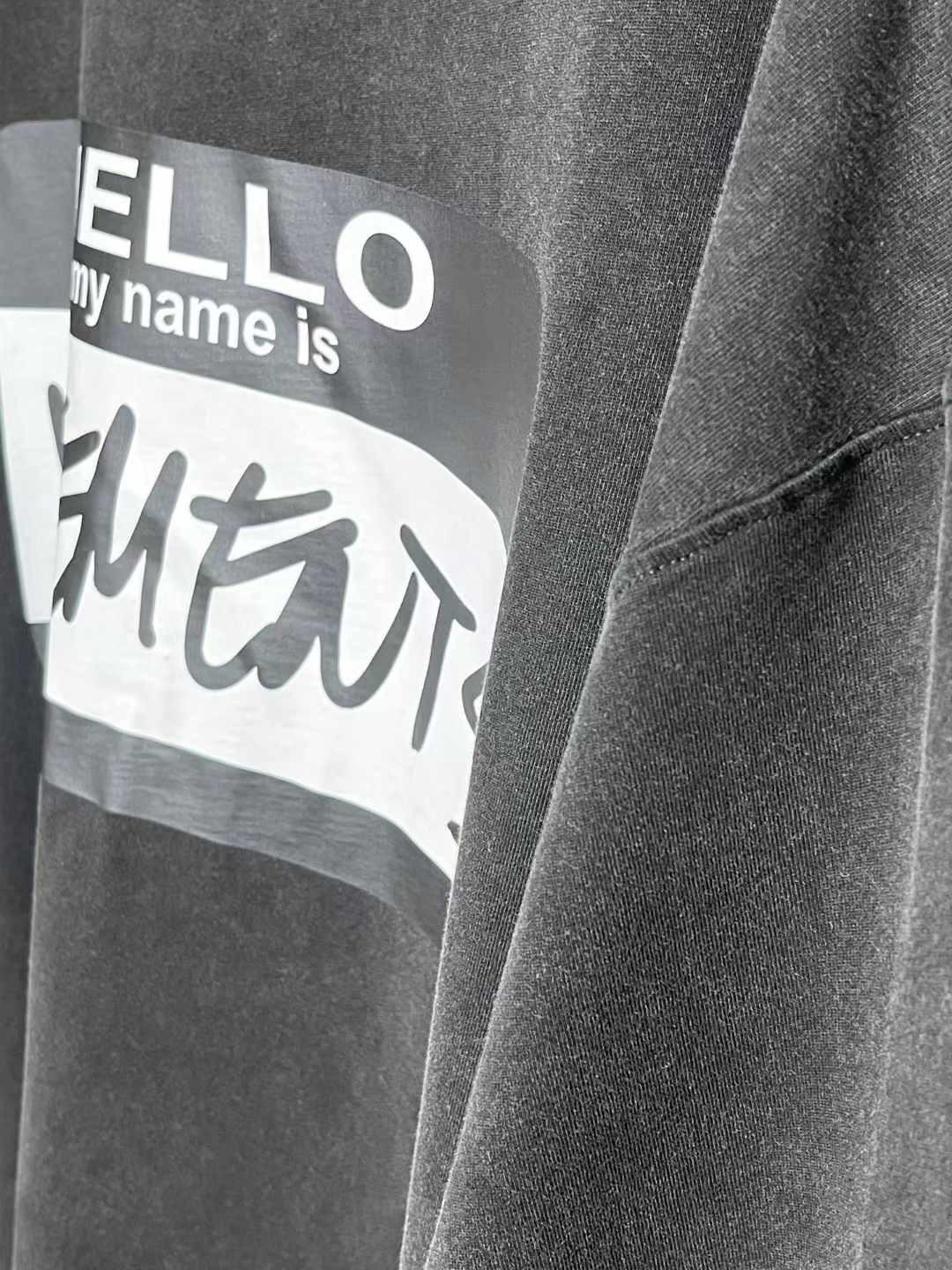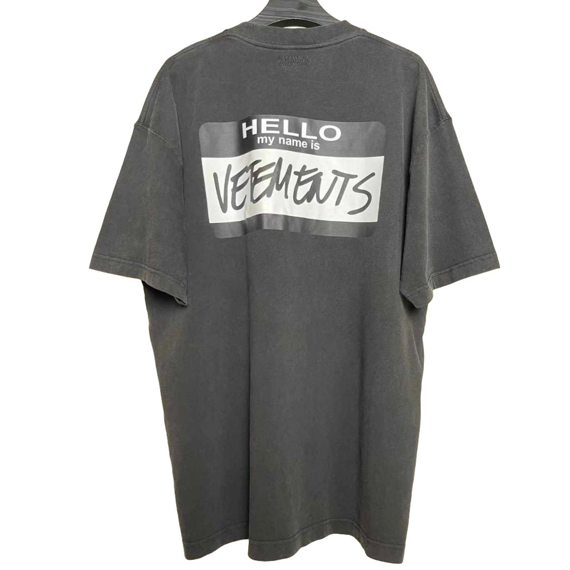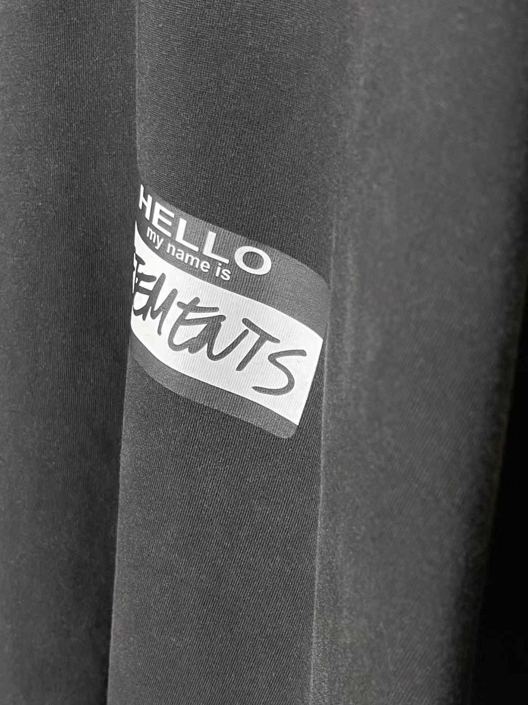 Cotton jersey T-shirt from VETEMENTS features a bold "My Name Is" graphic printed prominently on the chest and back. The design is completed with a subtle logo embroidery at the back collar. Cut with dropped shoulders for a relaxed fit, this iconic tee embodies the brand's signature rebellious aesthetic