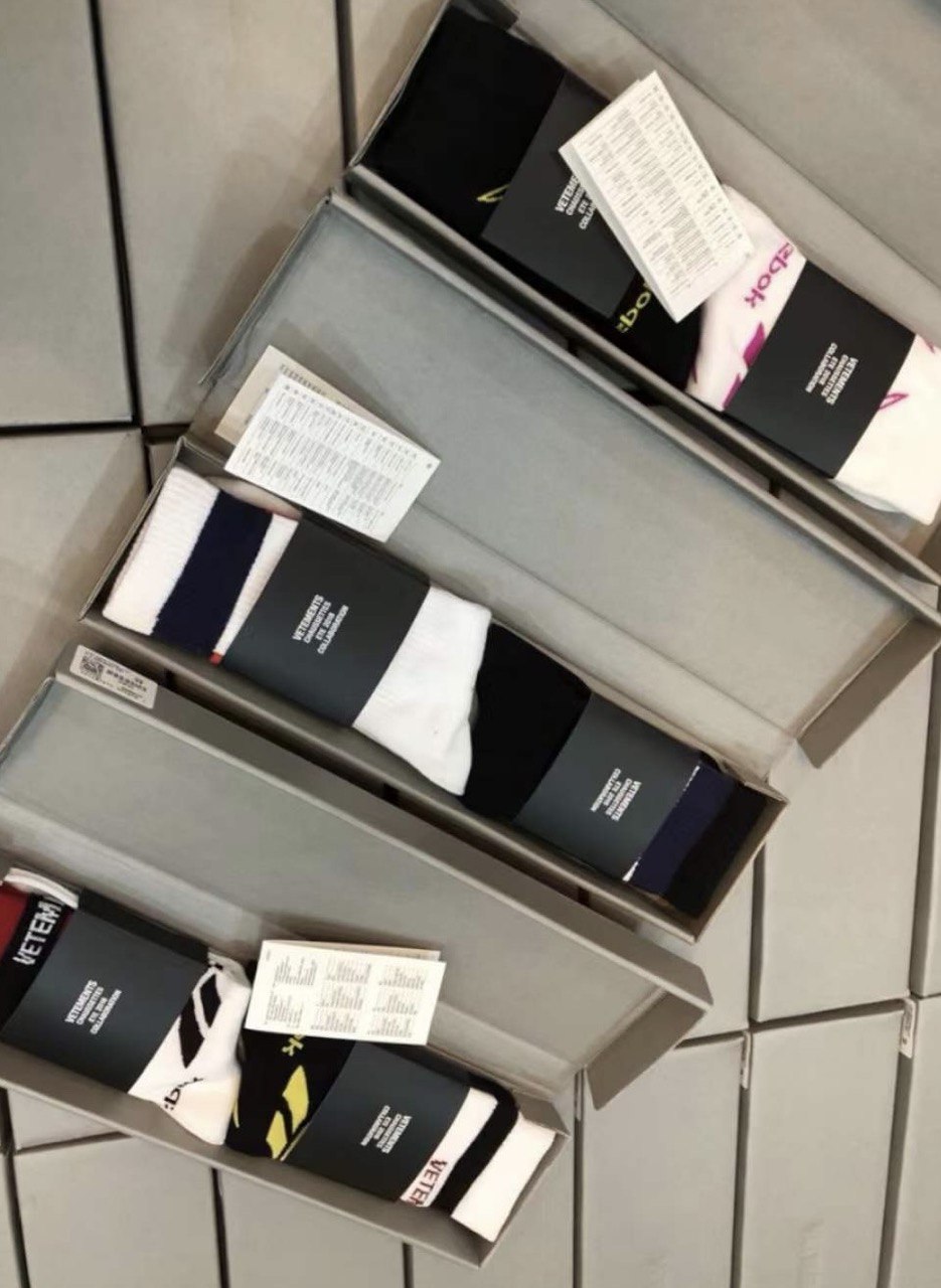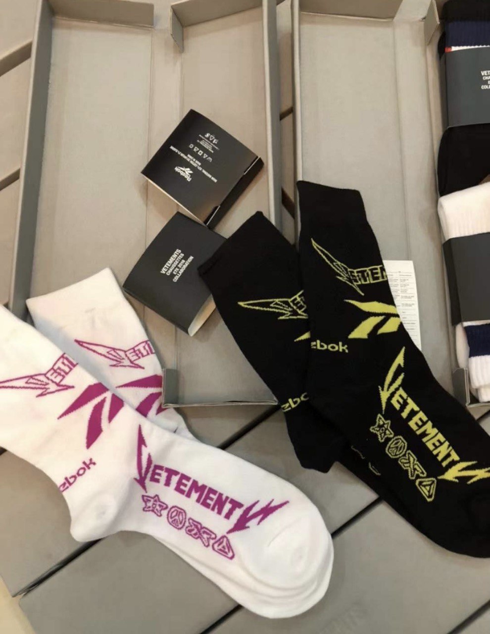 VETEMENTS White/Black Pair Reebok Edition Metal Logo Socks