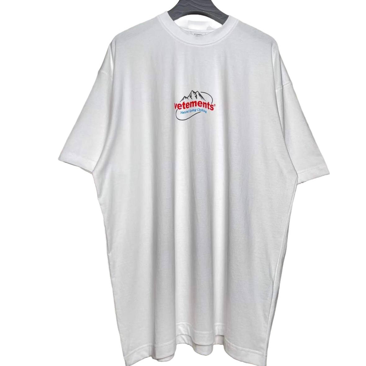 This VETEMENTS White Spring Water Logo T-shirt is a must-have for any fashion lover. Made from high-quality materials, it features the iconic logo and crisp white color. Stay stylish and comfortable all day long. Elevate your wardrobe with this statement piece.